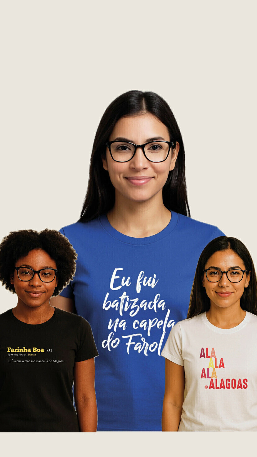 Inspirada no refrão marcante da música “Alagoas”, de Djavan, essa estampa transforma som em símbolo. “Ala, ala, ala... Alagoas” vira manifesto visual de quem carrega no peito o amor pela terrrinha com leveza, ritmo e regionalidade. Uma homenagem vibrante à musicalidade, à cultura e à identidade do povo alagoano.